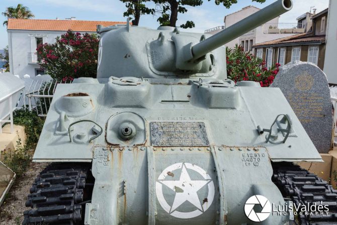 Este tanque es un M4A4 Sherman Tank americano de la 2ª Guerra Mundial llamado «Jeanne d’Arc». Conmemora la liberación de Marsella en agosto de 1944. Fue alcanzado por una granada incendiaria y sus tres ocupantes murieron en el acto.